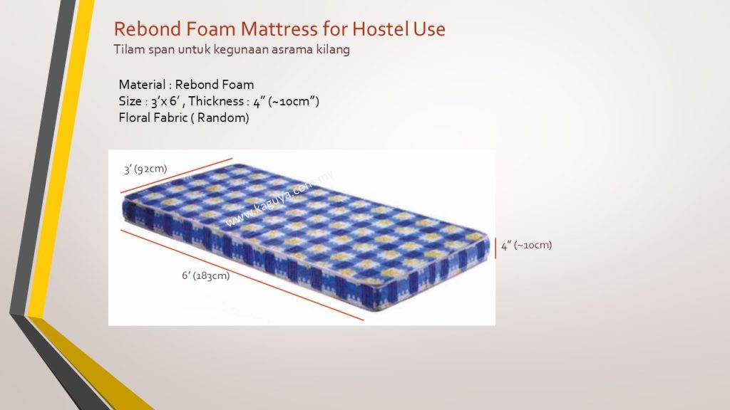 3×4 ” Rebond Foam Mattress, Hostel Mattress, tilam untuk asrama